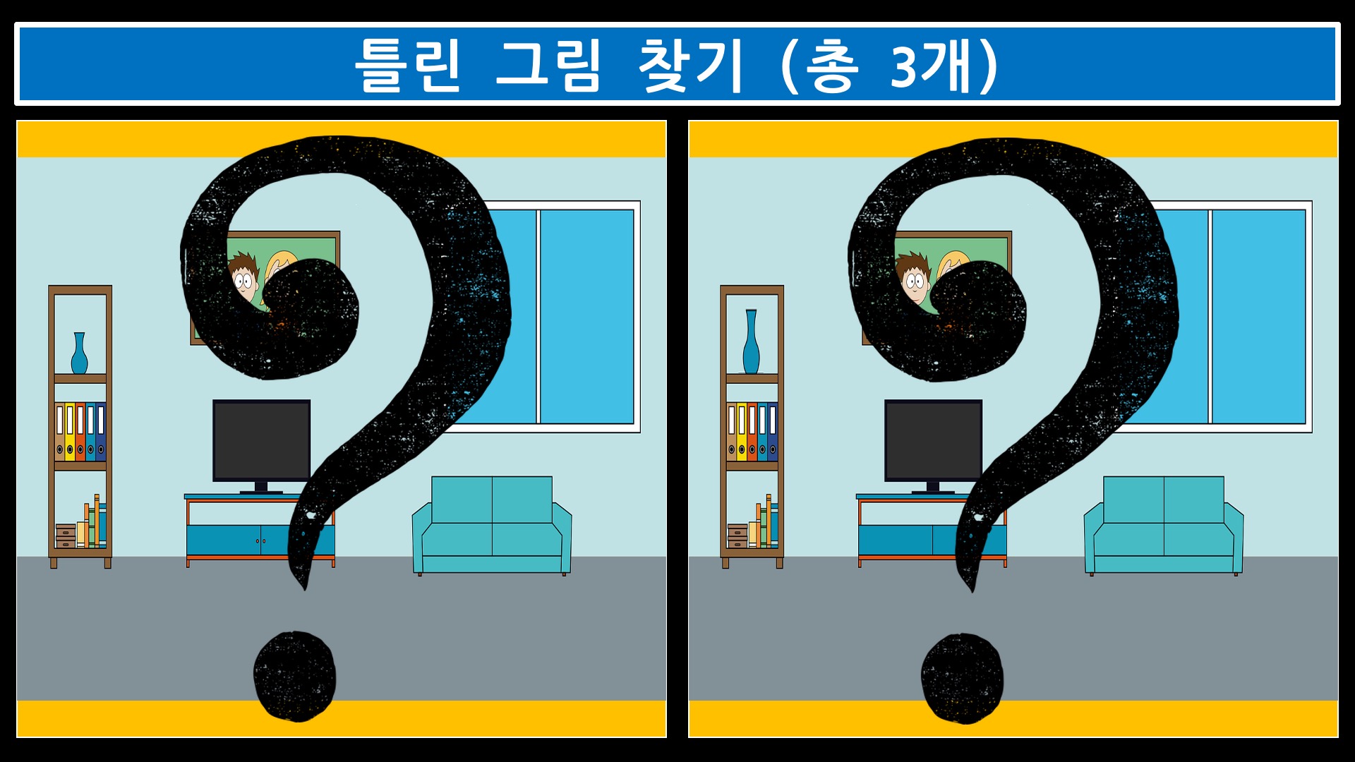 in Quiz, 틀린그림찾기틀린그림찾기! 다른그림찾기! 재미있는 틀린그림 90초 내에 3가지를 찾아보세요! 집중력향상과 두뇌 개발, 치매 예방에도 도움되는 퀴즈!